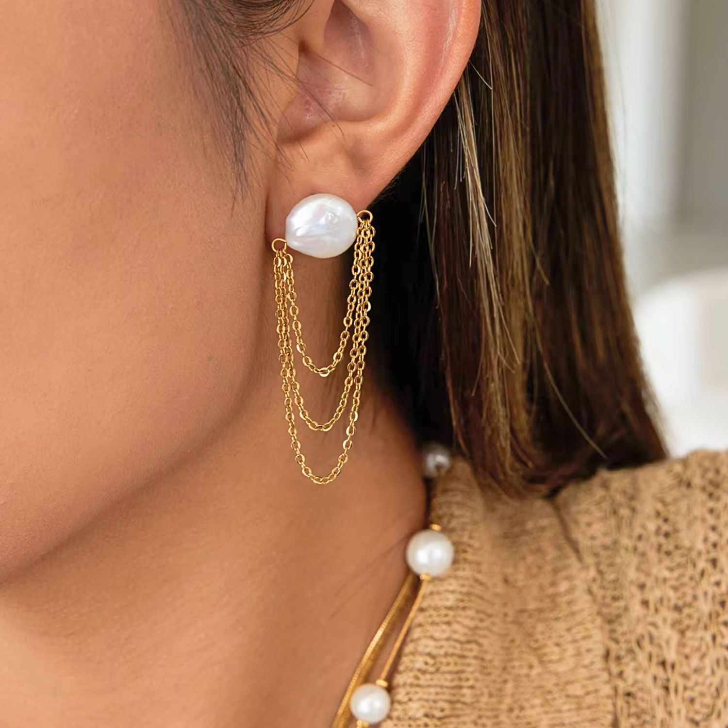 Floating Pearl Chain Earrings