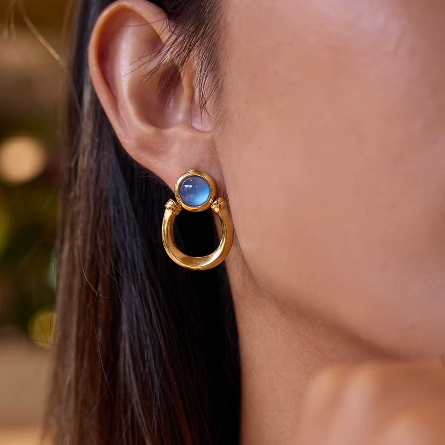 Elevate your look with the Helena Horseshoe Resin Earrings, featuring a refined gold horseshoe design set with a vibrant blue resin stone. These earrings offer a blend of contemporary elegance and artistic flair, perfect for adding a sophisticated touch to any outfit. Crafted to capture attention, they effortlessly enhance your style for both day and evening occasions.